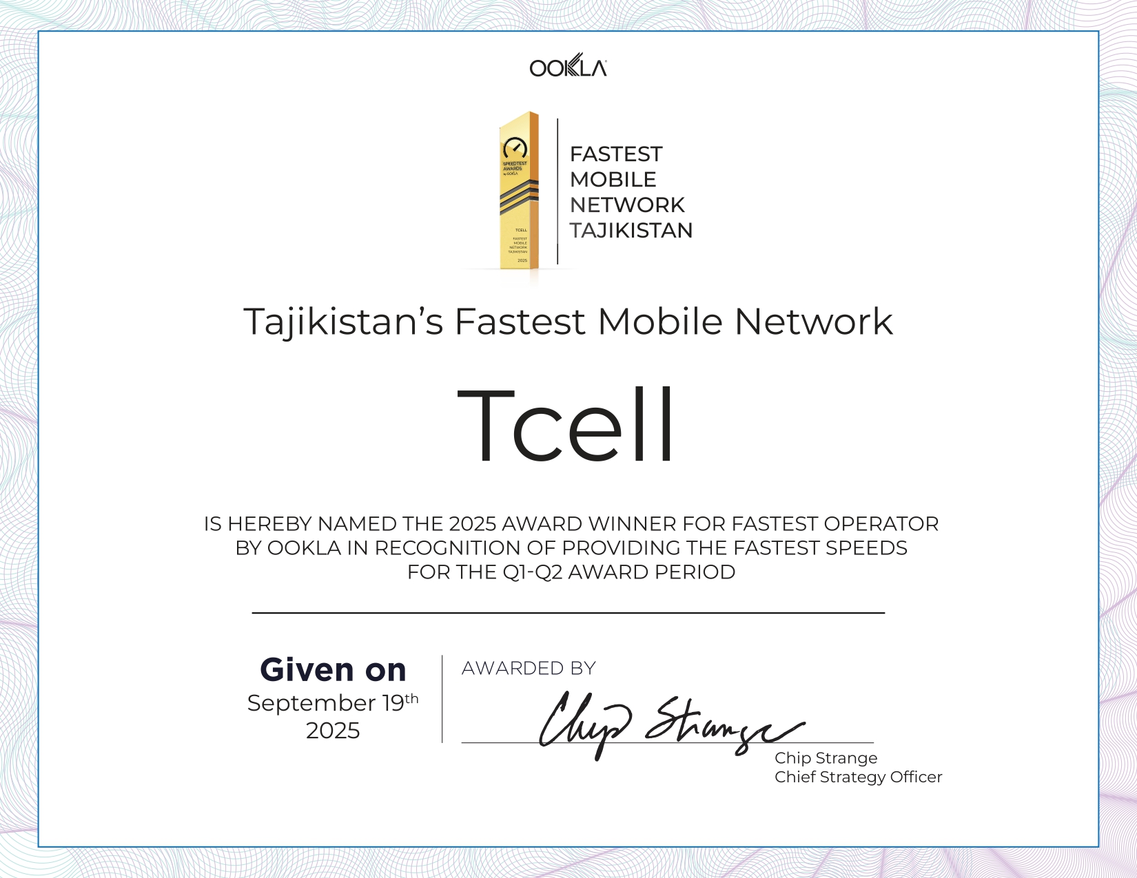 Tcell is proud to announce that, based on Ookla® analysis, it has been recognized as the fastest mobile network in Tajikistan for the first half of 2025.