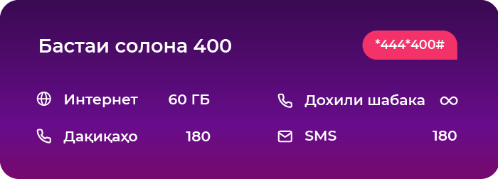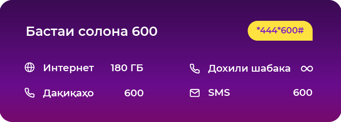 • Дақиқаҳо ва SMS дар ҳудуди Ҷумҳурии Тоҷикистон пешниҳод карда мешаванд.
