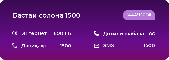 • Ҳангоми фаъолсозии «Бастаи солона», бастаҳои бемаҳдуд ва бастаҳои иловагии интернет ғайрифаъол карда мешаванд. Бақияи боқимонда бекор карда мешавад.