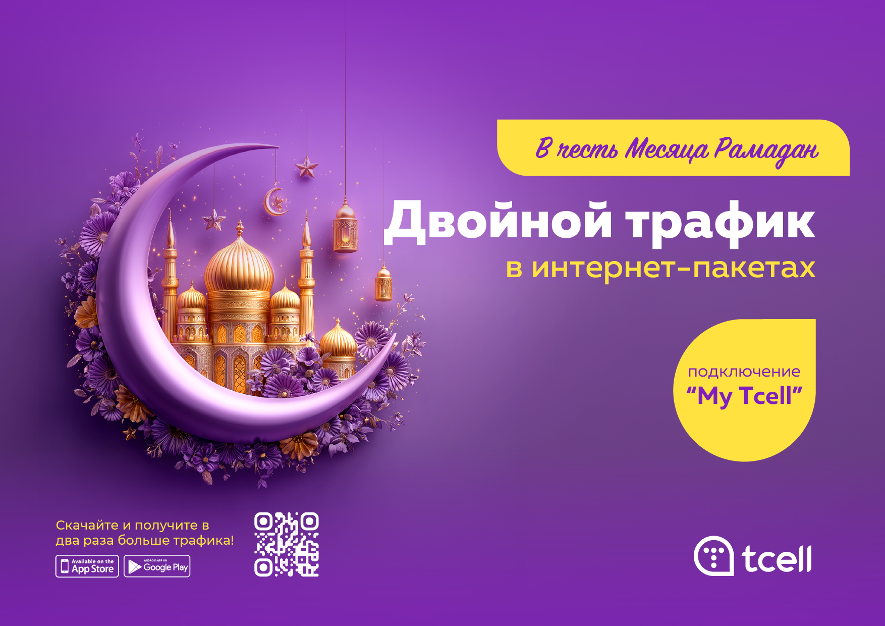 В честь наступления священного месяца Рамадан мы рады представить Акцию «Двойной интернет-трафик»! Подключайте интернет-пакеты через приложение My Tcell и получайте удвоенный объем интернет-трафика.