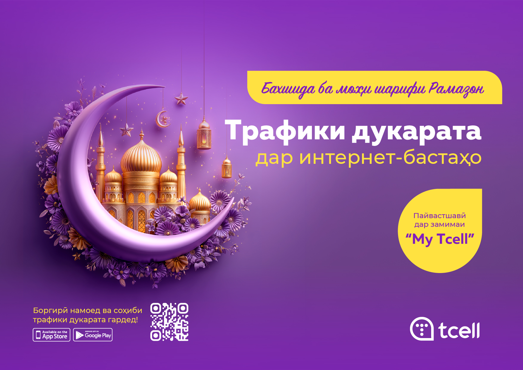 Ба муносибати фаро расидани моҳи шарифи Рамазон, мо бо хушнудӣ иқдоми «Интернети дукарата»-ро пешниҳод менамоем! Бастаҳои интернетиро тавассути замимаи My Tcell фаъол намоед ва ҳаҷми дукаратаи трафики интернетро ба даст оред.